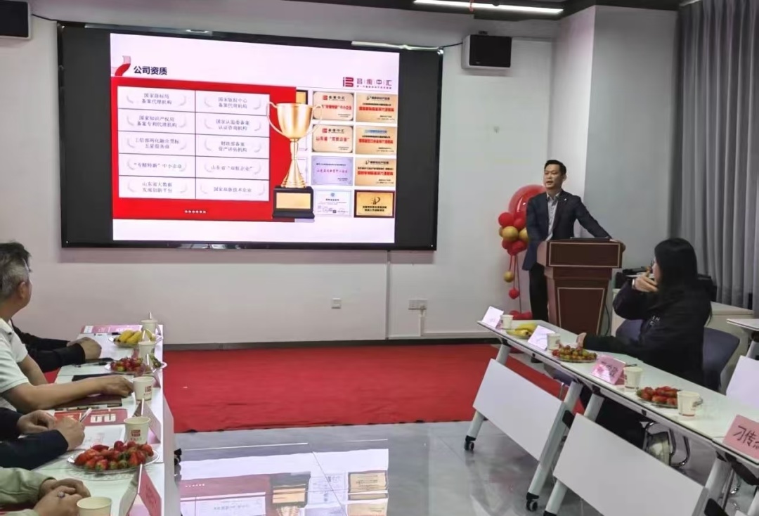 授牌仪式暨交流座谈会伊始,山东昌禹知商信息技术服务有限公司总经理邵常政对临沂市产学研合作促进会相关领导一行的到访莅临表示热烈欢迎与衷心感谢,并详细介绍了企业发展经营、核心业务布局、技术研发实力、人才团队建设及未来战略规划等核心情况。他表示,企业深耕信息技术服务、知识产权科创赋能、企业数字化转型赋能、科技项目配套服务等核心领域多年,始终立足产业发展实际需求,聚焦企业科创培育、数字化技术落地应用、科创资源整合对接等重点工作,凭借扎实的技术服务能力、完善的配套服务体系和丰富的行业实操经验,赢得了市场客户与行业同仁的广泛认可。